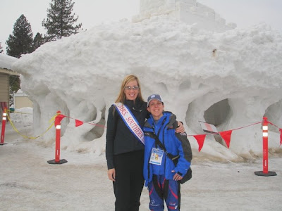 Mrs. Southern Idaho Angie Williams attend the McCall Winter Carnival and sent me these pictures. Here is what Angie had to say about the pictures, the 1st picture is a full shot of one of the sculptures at the McCall Winter Carnival. My family & I went there this weekend and had a wonderful time! After I posed for this picture, my son & and I started walking away, when I heard "Hey, Mrs. Southern Idaho!" These two wonderful ladies asked me to take a picture. Read on to see...The 2nd pic, I am standing with Karen, who I had the pleasure of meeting! Karen is a Special Olympian Snowshoer from Denver. She was very excited that her team beat their best recorded time (placed previously in Denver). She was a true joy to meet! We had a great time chatting. She really brightened my day!!!